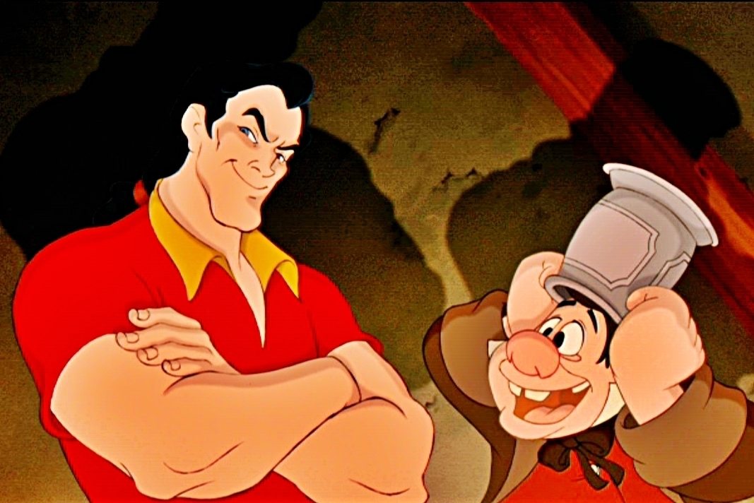 - Em A Bela e a Fera temos Gaston e seu fiel, quase apaixonado capacho, Le Fou (o tolo) que faz todos os mandos e desmandos do arrogante e belo rapaz.
