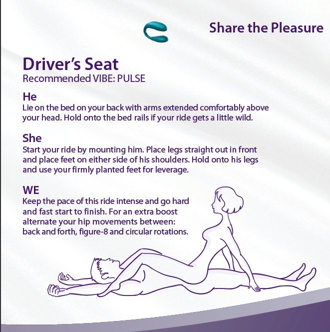 Super legal o livro de instruções do We Vibe , brinquedo erótico desenhado especialmente para casais, que apresenta posições diferentes, compatÃveis aos modos de vibração. O barato é que o guia vale tanto para idéias de uso do brinquedinho, quanto dicas de posições sexuais para casais entediados, mas bem dispostos.  O guia está disponÃvel para download neste link. Curti!